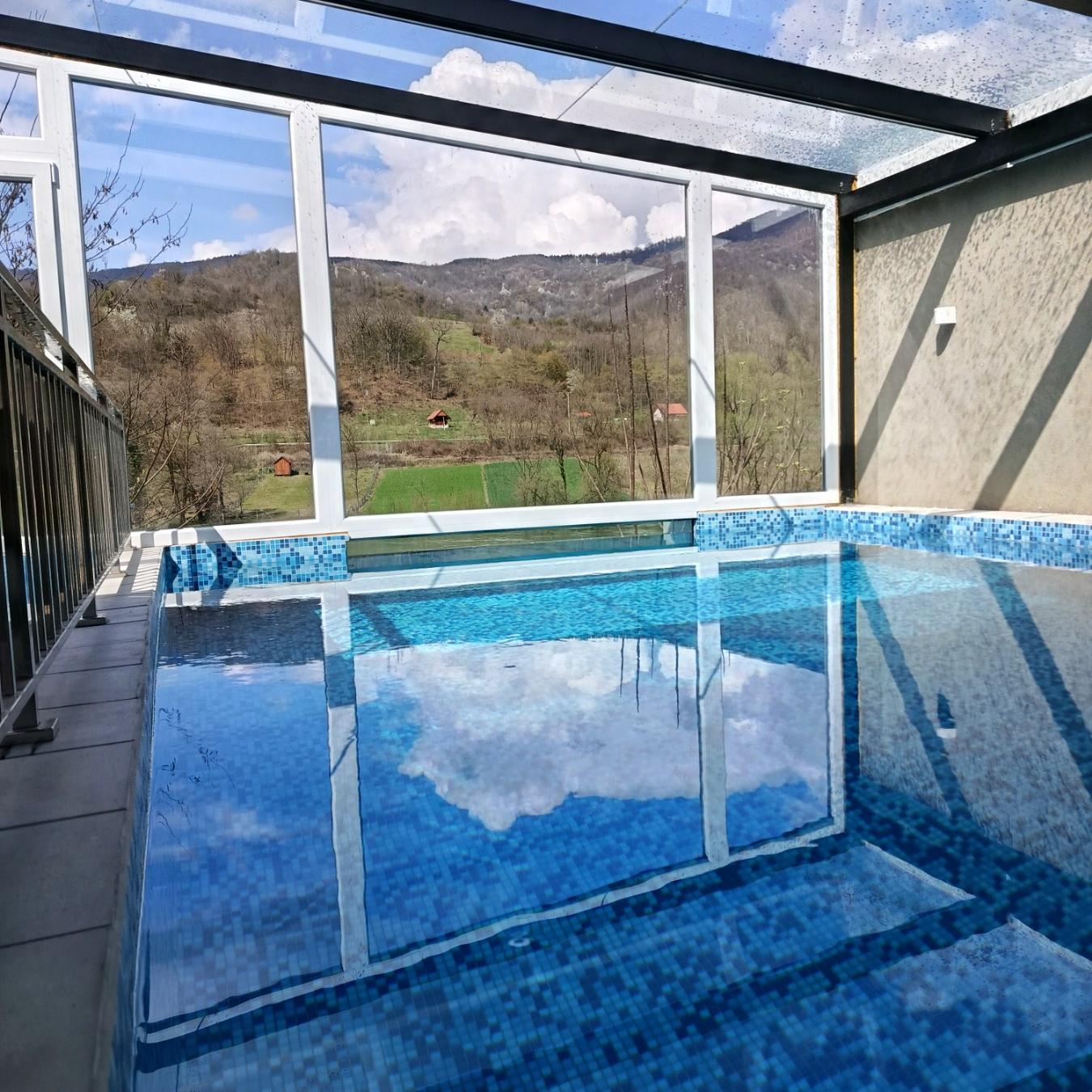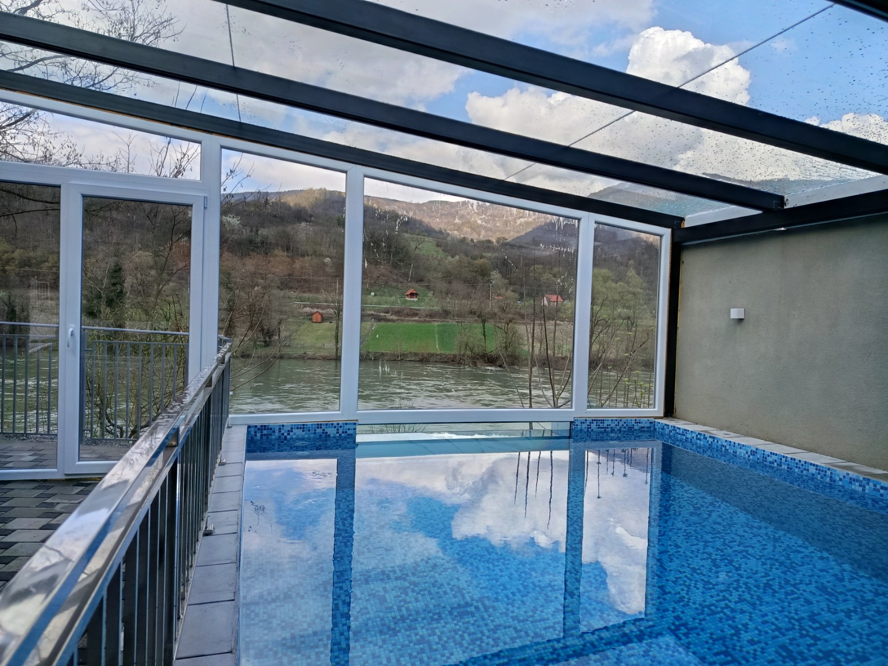 U blizini Bajine Bašte, na samoj obali reke Drine. Uživajte u bazenu sa toplom vodom od 28°C, savršenom za opuštanje i relaksaciju.